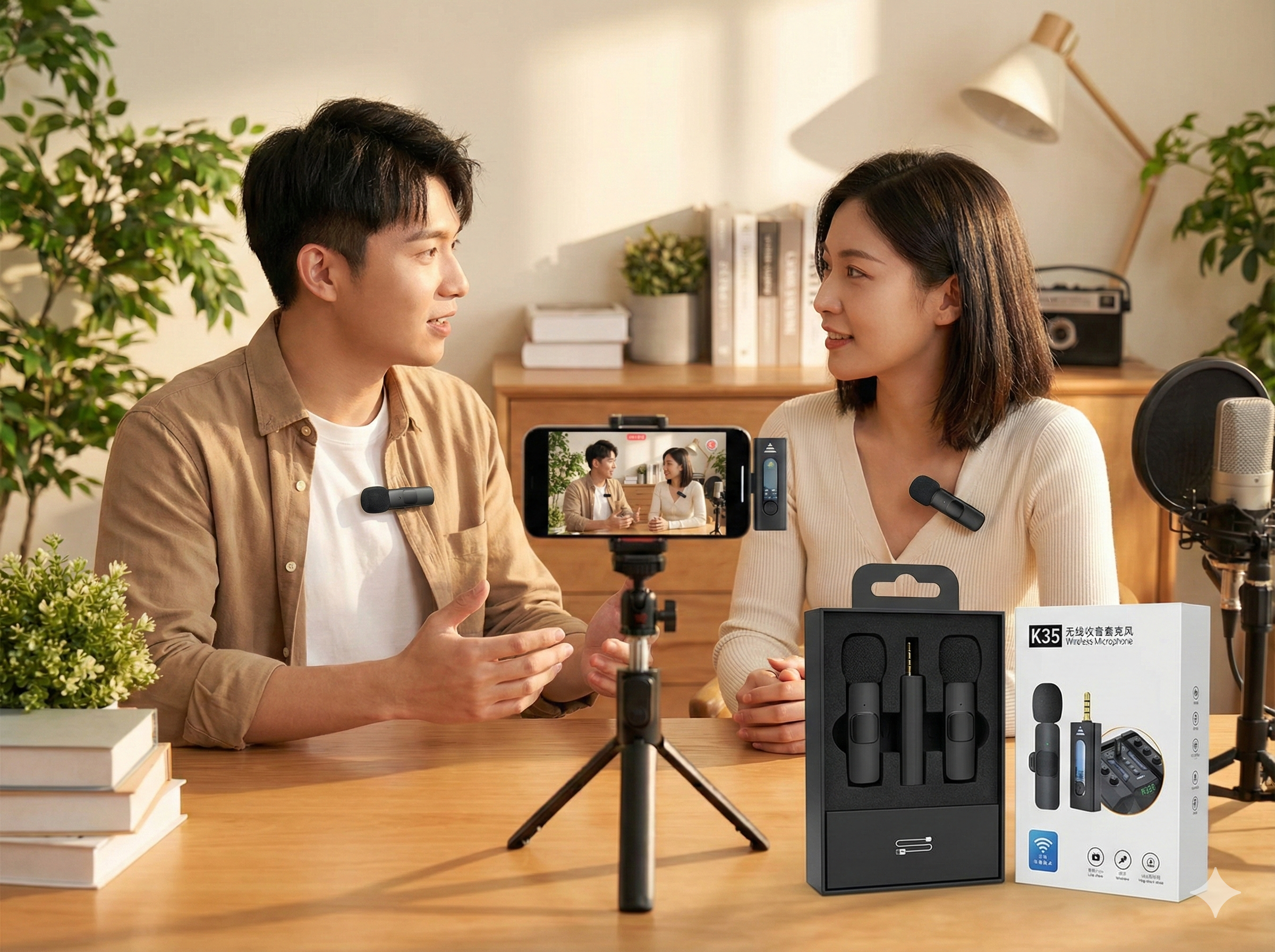 K35 Dual Wireless Dynamic Microphone (3.5mm) – 220mAh Battery, Noise Cancelling